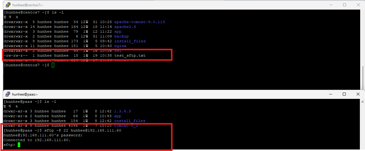 192.168.111.60 1번서버의 test_sftp.txt 파일을